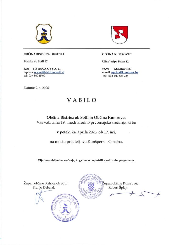 Domaćin ovogodišnjeg susreta je Občina Bistrica ob Sotli.