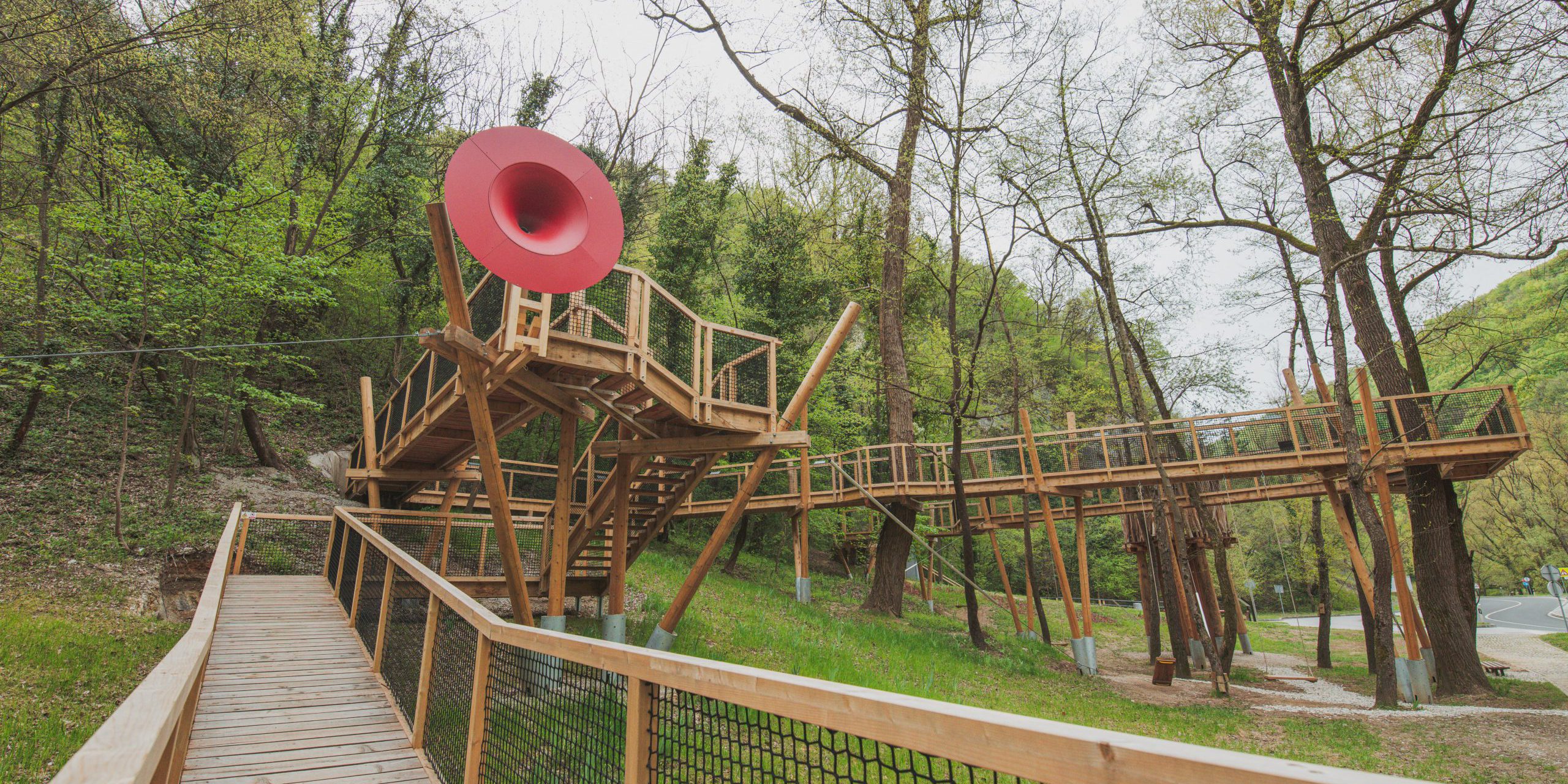 Tema bioraznolikost isprepliće s temom glazbe kroz skulpturu trube koja prati cijelu stazu, inspirirane ovim jedinstvenim lokalitetom i spomenikom himne Lijepa naša. Staza uključuje i promatračnicu za ptice u obliku ptičjega gnijezda i ljuljačke, dok podnožje staze krase perunike.