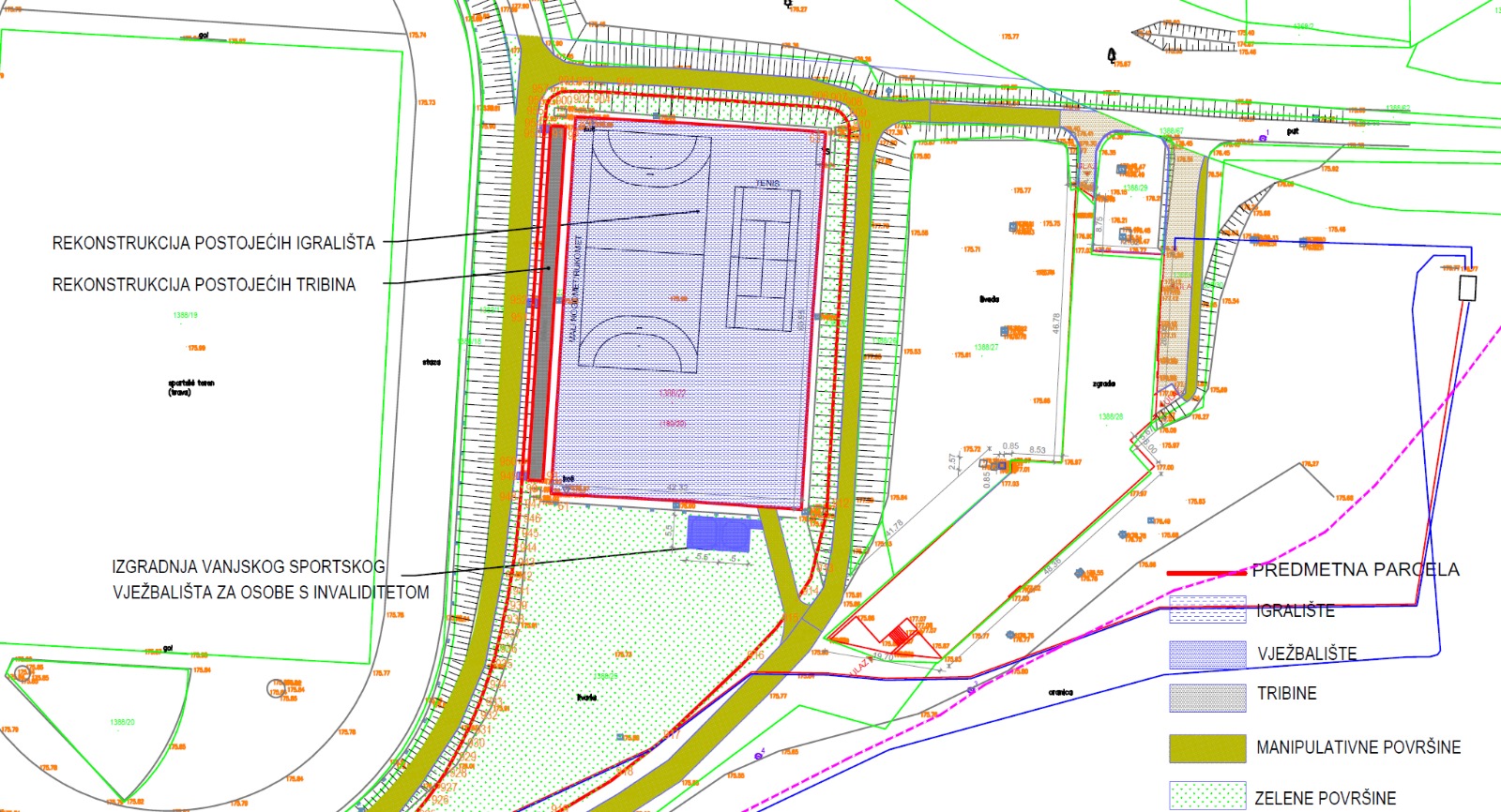 Projekt obuhvaća sveobuhvatnu obnovu postojećeg multifunkcionalnog igrališta ukupne površine 1.860 m². Planirani radovi uključuju sanaciju oštećenja i ugradnju novog asfaltnog sloja, na koji će se postaviti moderna akrilna sportska podloga u plavoj i zelenoj boji. Na obnovljenoj podlozi iscrtati će se linije i ugraditi sportska oprema za više sportova u skladu sa standardima za mali nogomet, rukomet i tenis.